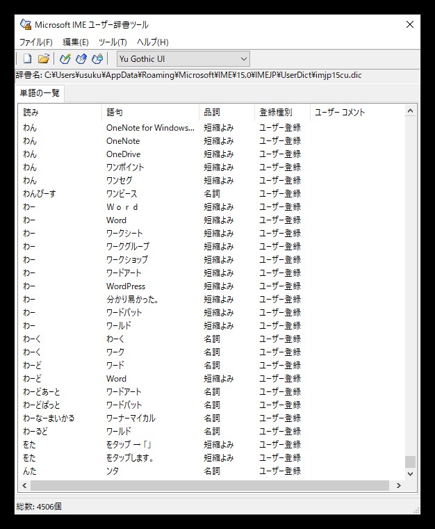 単語登録がインストールされたことを「Microsoft IMEユーザー辞書ツール」の