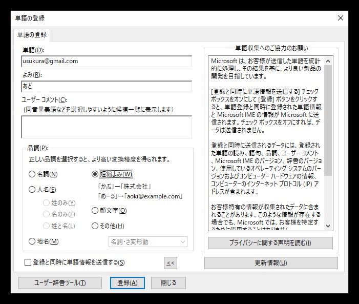 文字入力をスピーディに間違いなく効率よく行うには単語登録(辞書登録)を活