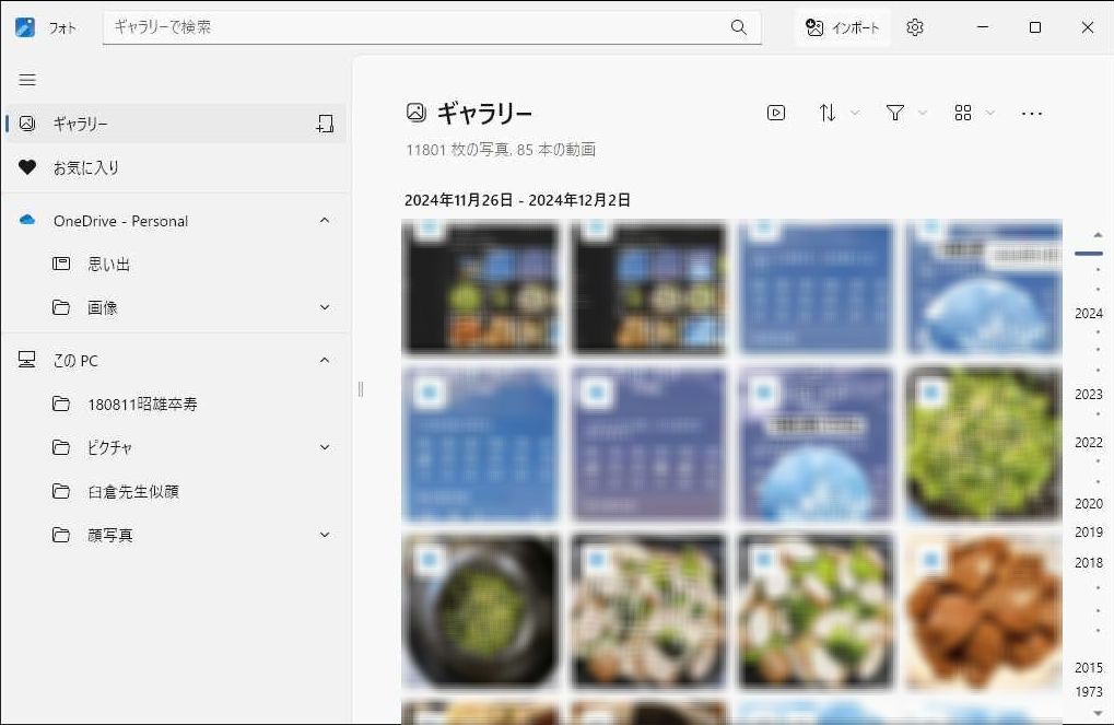 1.「フォト」アプリを開いた状態で、SDカード、USBフラッシュメモリーをPCに差