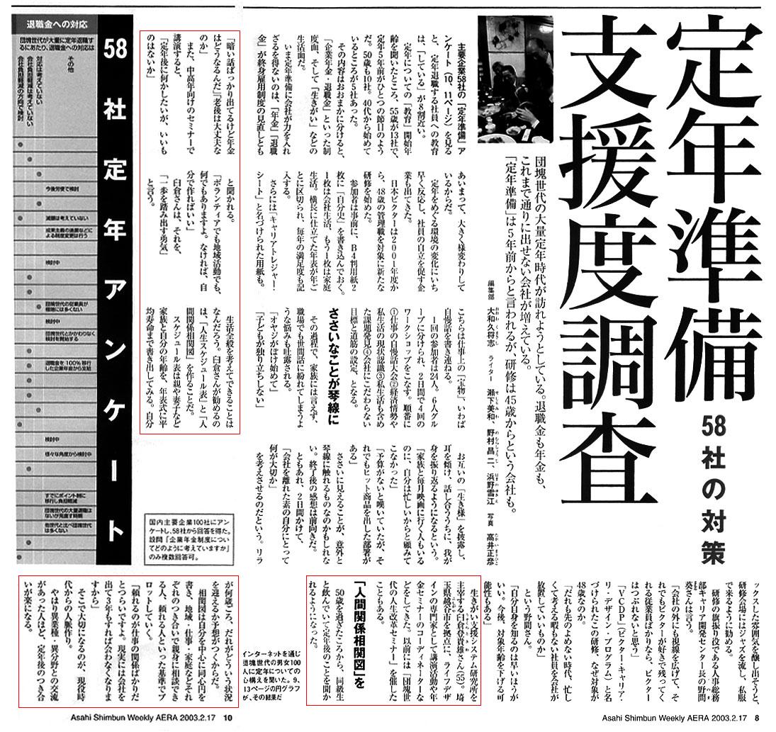 雑誌「アエラ」の「団塊世代の定年準備」に紹介