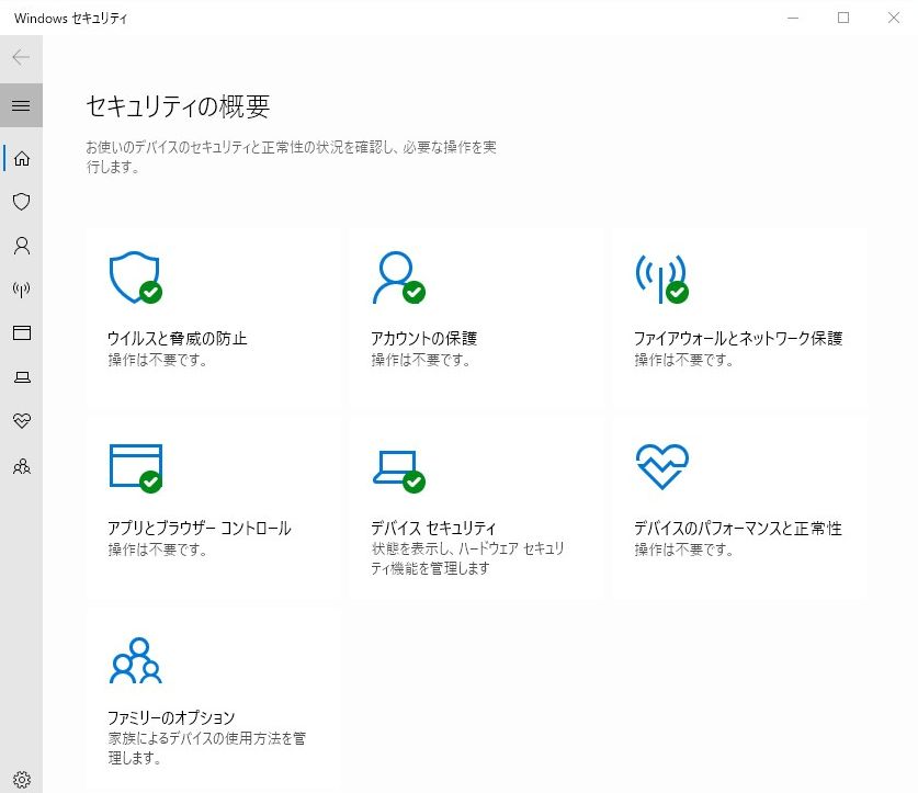 「Windows セキュリティ」は下記の7つの機能があります。